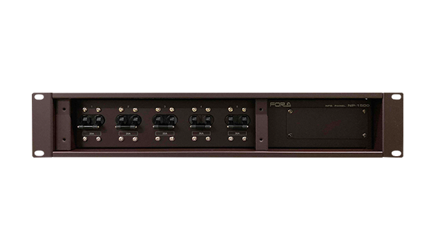 NP-1500Aは、最大150Aまでの動作用電源を分配供給できるラックマウント型パワーディストリビュータです。ブレーカーは5系統装備し、各ブレーカーの容量はご購入時に20A または30Aのいずれかに指定可能です。電源オン/オフの一括制御が可能で、スタジオで、あるいは中継・移動用として業務用映像機器の運用に最適な製品です。