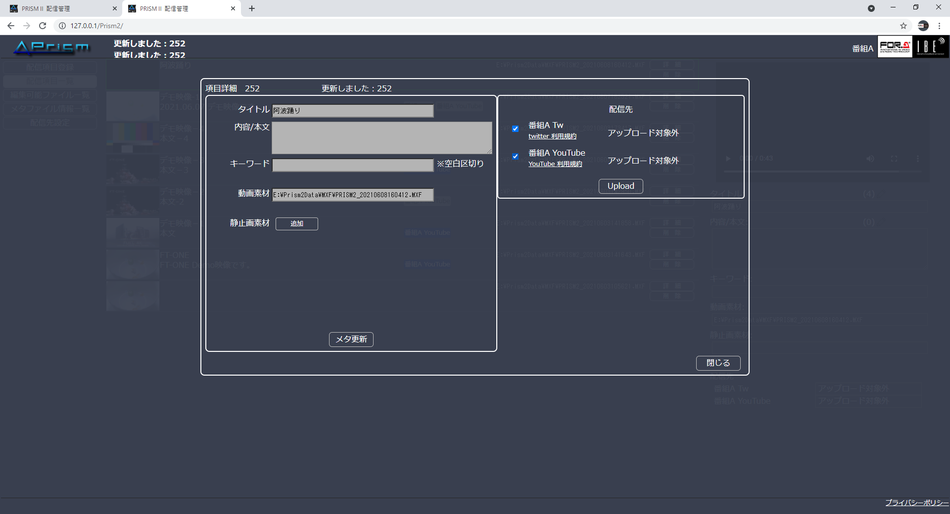 オンエア映像のオンデマンド配信向けコンテンツ作成・アップロード支援や、オンエア前のダイジェスト映像切出し支援・SNSへのアップロードが可能なターンキーシステム。