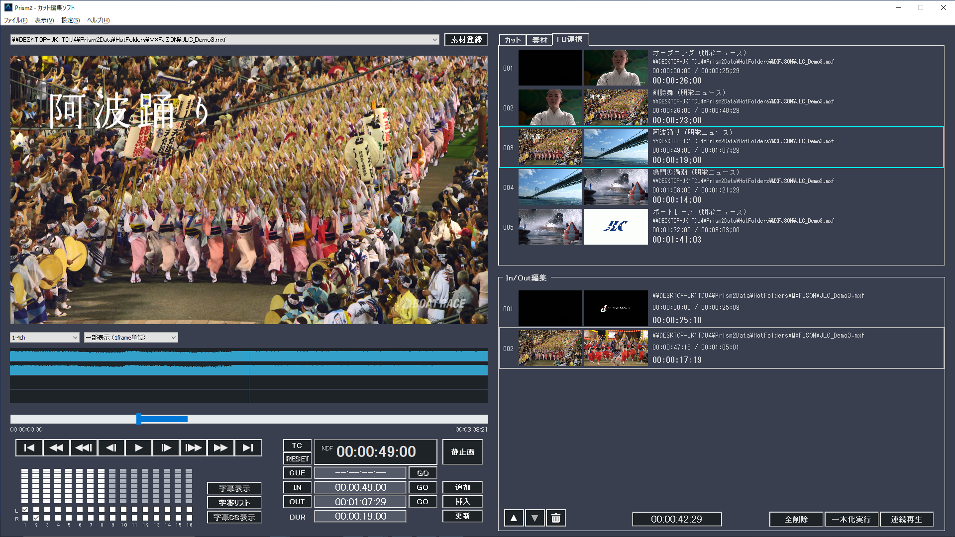 対応する朋栄製ファイルベースシステムと連携して、カットリスト候補の取込みに対応しています。