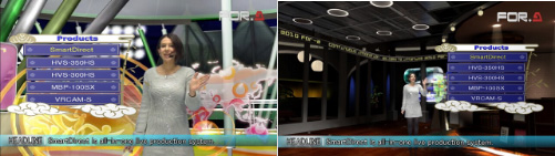 VRCAM-Sによるバーチャルスタジオ運用時は、描画パフォーマンス維持の観点から背景CGの解像度を1920 x 540pixelsに制限しています。そのため、絵柄によってはジャギーが目立つ等の影響が出る可能性がございます。あらかじめご了承ください。