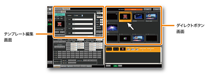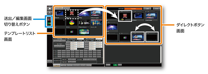 テンプレートリスト画面からダイレクトボタン画面へ、ボタンをドラッグ&ドロップすることで登録