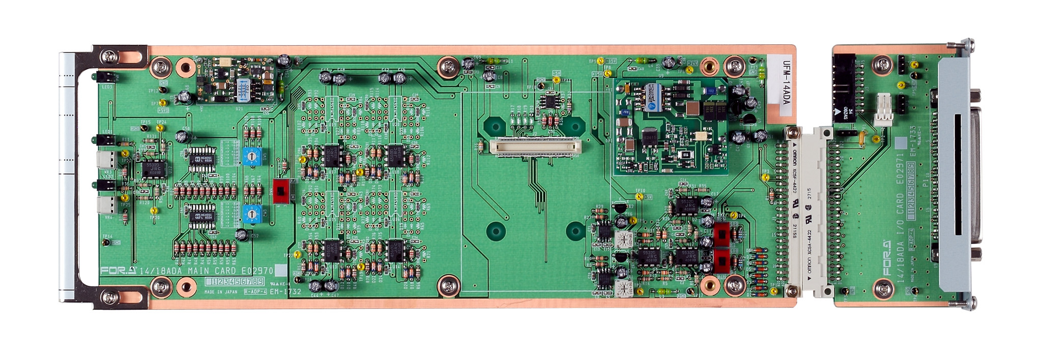 UFフレームに実装可能なモジュール形式のアナログオーディオ分配器。UFM-14ADAは1系統4分配または2系統2分配、UFM-18ADAは1系統8分配または2系統4分配することが可能。