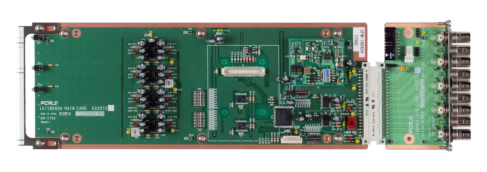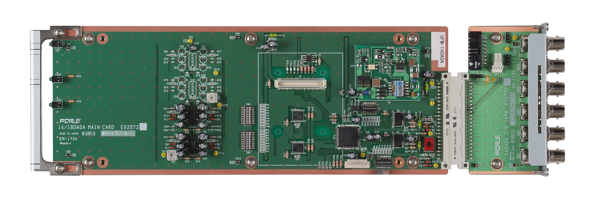 UFフレームに実装可能なモジュール形式のデジタルオーディオ分配器。UFM-14DADAは1系統4分配または2系統2分配、UFM-18DADAは1系統8分配または2系統3分配*することが可能。
