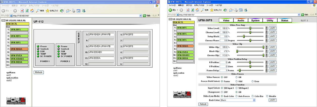 - ウェブブラウザ制御画面からフレーム内の各モジュールの監視/制御が可能