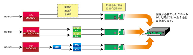 UFMフレームに実装可能なモジュール形式のTSチェンジオーバースイッチャ。