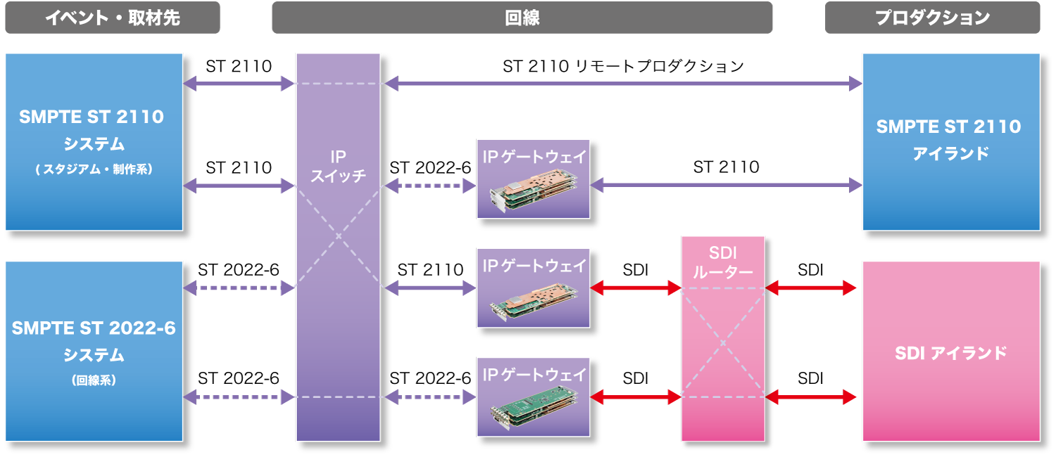IP方式間、IP/SDI間の変換を実現するIPゲートウェイ