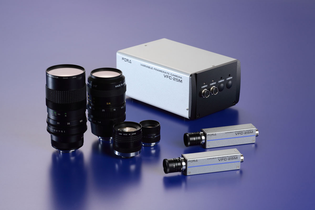 VFC-25Mは機器内部など狭小空間での高速度撮影が可能な小型ヘッド型高速度カメラです。2台の小型カメラヘッドによる2方向からの同期撮影、2分割表示機能による各カメラ映像の同期表示など多彩な機能を搭載。製品開発分野やFAラインでの故障診断、マシンビジョンの不具合解析、医療、スポーツ、バイオメカニクス分野での運動解析など、場所、用途を選ばない高速撮影環境を提供します。