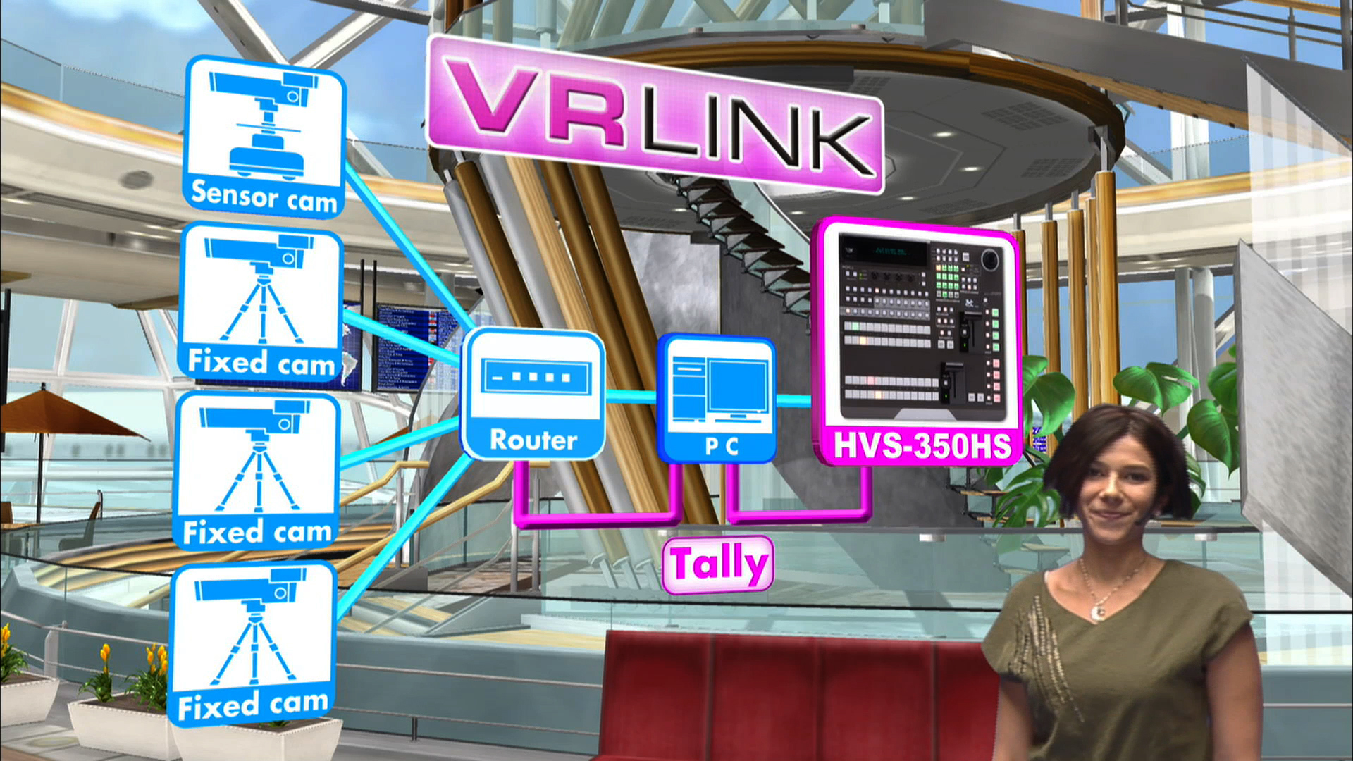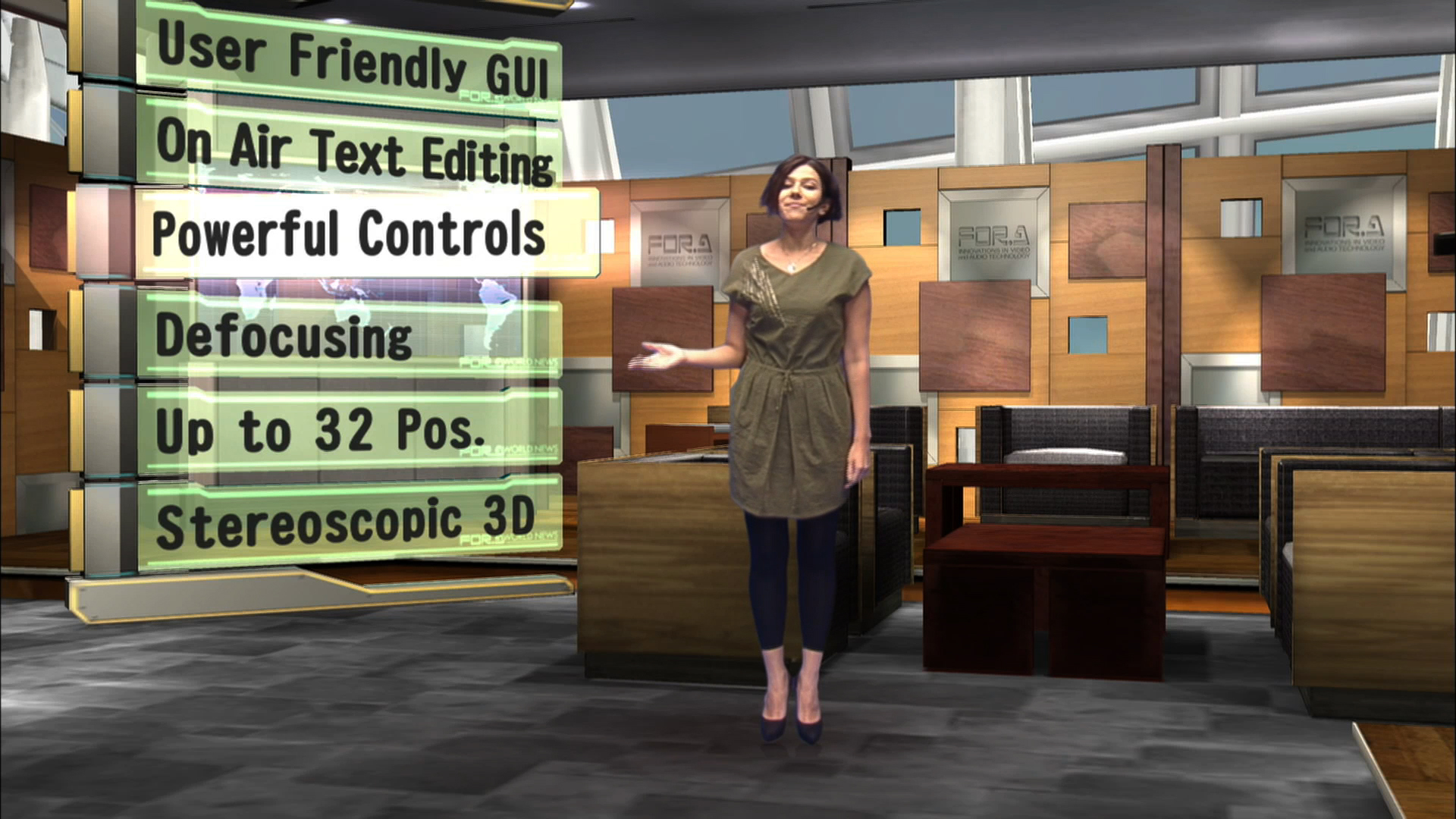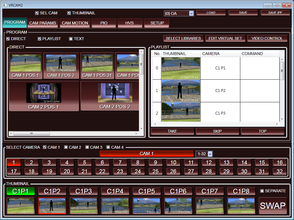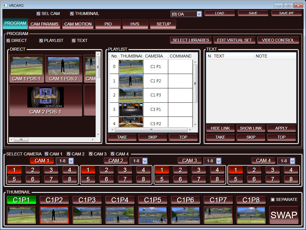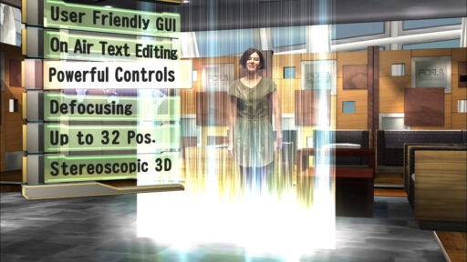 ワンマンオペレート、ノーカメラマンにてバーチャルスタジオを実現するソフトウェア。カメラポジションやセンサカメラの拡張のほか、番組制作に便利な各種機能を搭載。