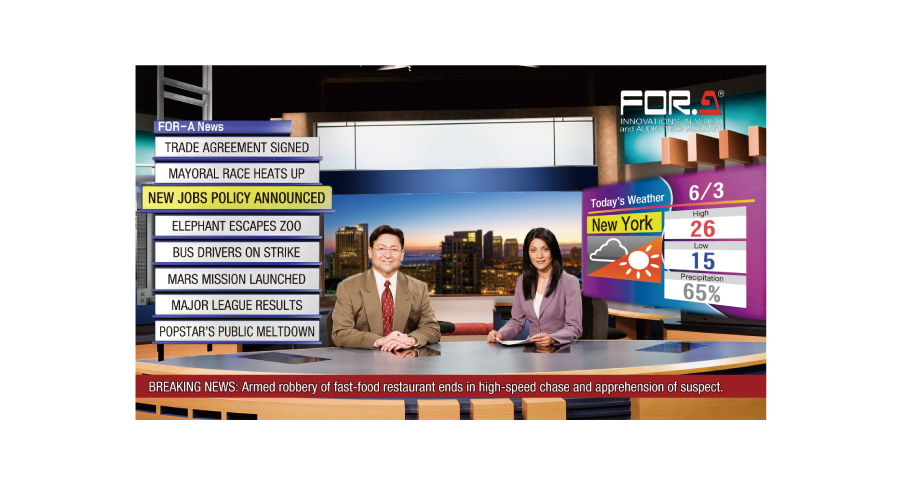 – ビデオウォール、ビルボード、帯テロップなどの50種類以上のCGテンプレートを標準添付センサー付きカメラであればカメラマンがリアルタイムに動かすことも可能*1