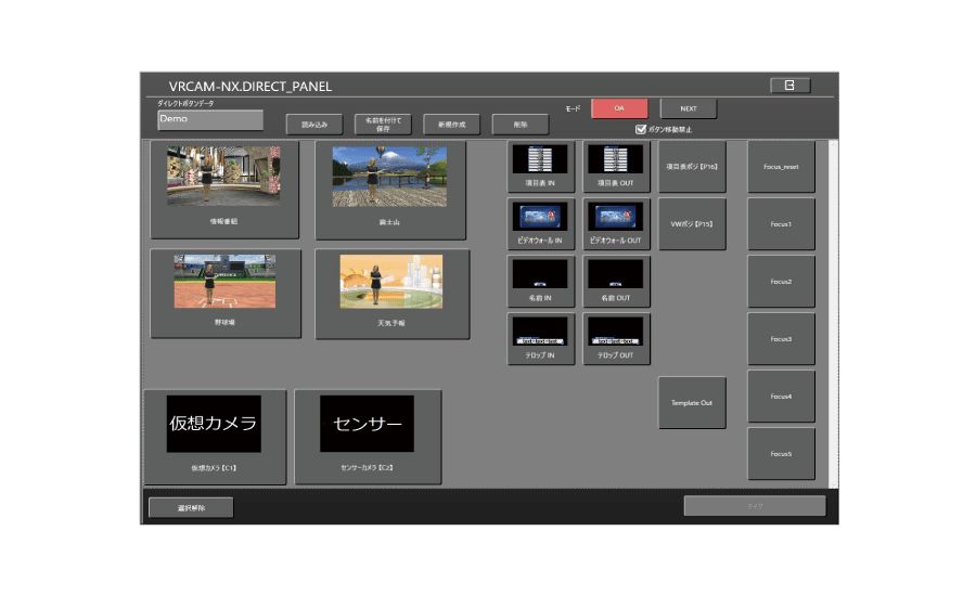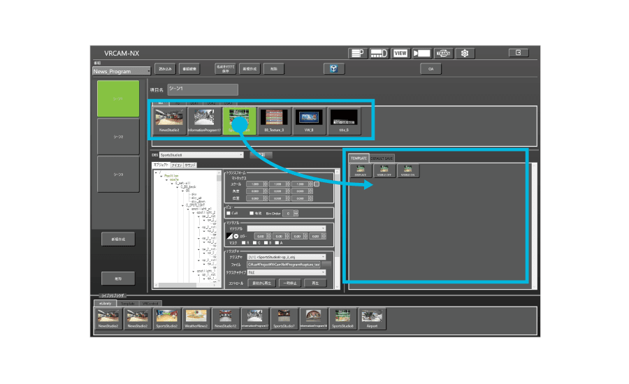 3DCGの簡易送出を提供するソフトウェアVRCAMシリーズ。バーチャル運用時は固定カメラでもカメラワークをしているかのような運用が可能な仮想カメラの演出に加え、テンプレートCGを活用したコンテンツ作成や送出制御が可能。豊富な機能を搭載し、NDI®およびUnreal Engineに対応するVRCAM-NX2、NDIに対応し、コストを抑え手軽に使用可能なVRCAM-Liteの2モデルをラインアップ。