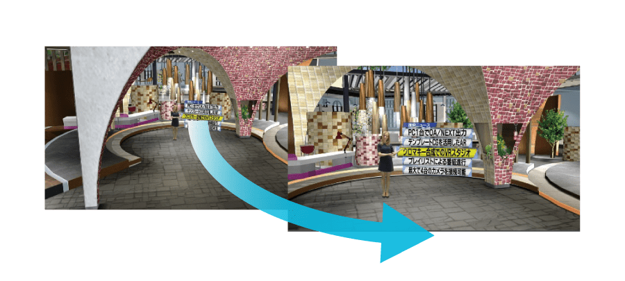 – 固定カメラでもCG空間内で疑似的なカメラワークを実現