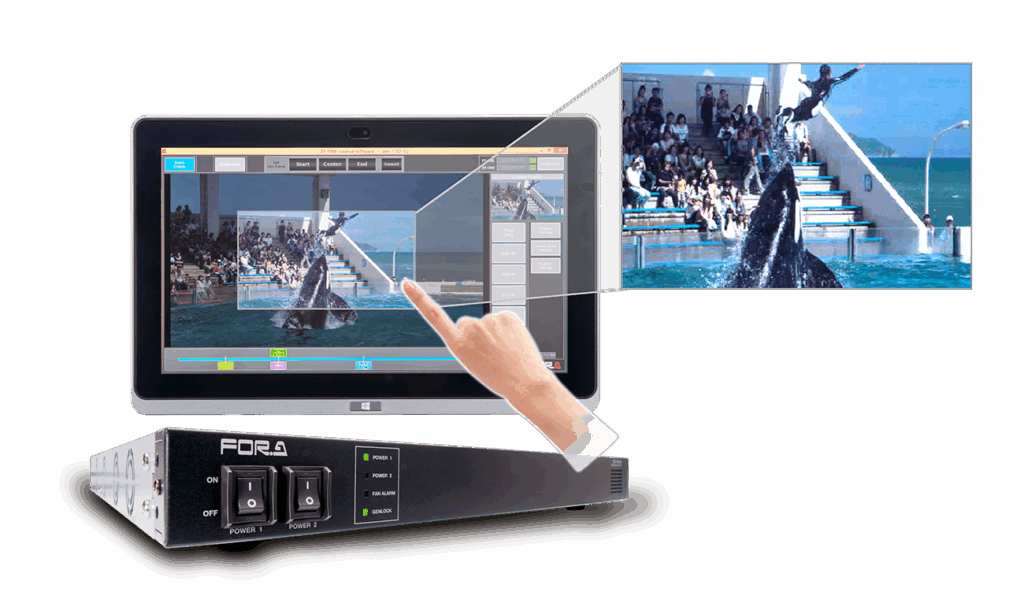 直観的なタッチパネル操作で、4K映像の中から任意のサイズで切り出しポイントを設定し、HDコンテンツとして出力することが可能な4K切り出し装置*。リアルタイムでの自動追従も可能。ズームインしながらのスロー再生や自由で流れるようなカメラワークなど、スポーツ中継のリプレイシーンの演出に最適です。
