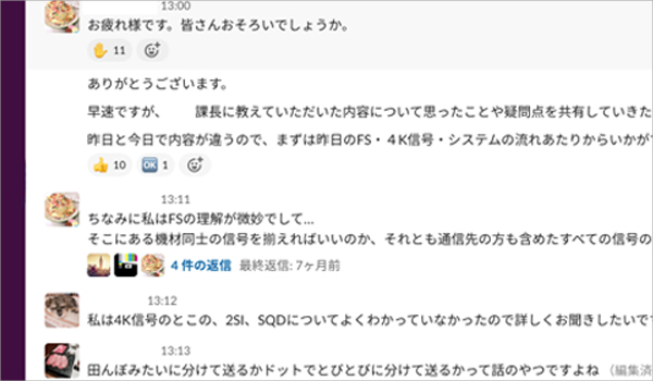 入社後すぐに緊急事態宣言が出てしまったので、4、5月はほぼ全て在宅勤務でした。在宅中はチャットを活用して、製品の勉強や営業フローのロールプレイ演習などを行いました。
