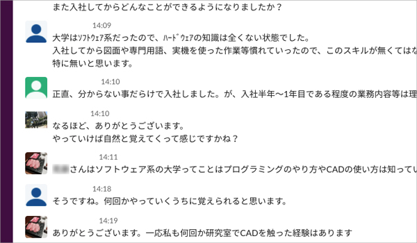 ものづくりができること。採用担当者が終始丁寧な対応をしてくださったこと。最終面接で社長とお話ししたときの印象がとてもよかったこと。以上3点が大きな理由です。